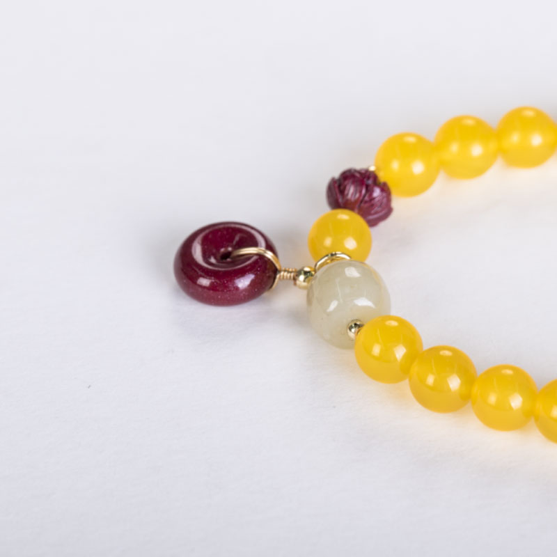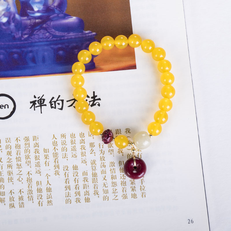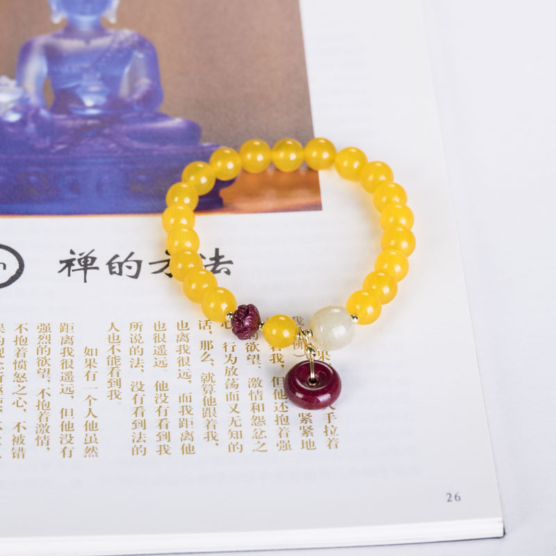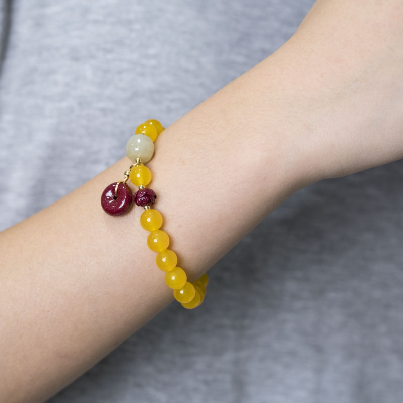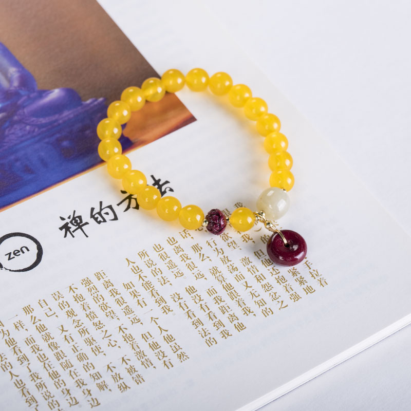 Traditional Chinese Wisdom Fengshui Fortune Vintage Yellow Agate Yellow Jade Chinese style bracelet women gift birthday gift mom girlfriend gift
